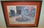 Print of New Orleans Courtyard signed Helen Beachmann, 40"w., 33"h. Print of New Orleans Courtyard signed Helen Beachmann, 40"w., 33"h.