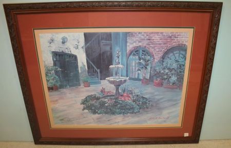 246 Print of New Orleans Courtyard signed Helen Beachmann, 40"w., 33"h.