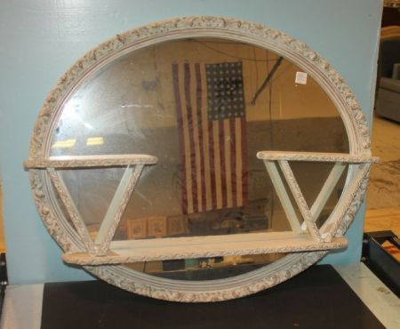 263 Vintage Mirror with What Not Shelves 30"w., 24"h.