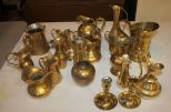 272 Box Lot of Various Brass Pitchers, Vases, Pair of Candlesticks