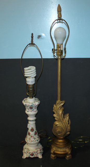 291 Italian Painted Ceramic Lamp and Gold Decorative Lamp