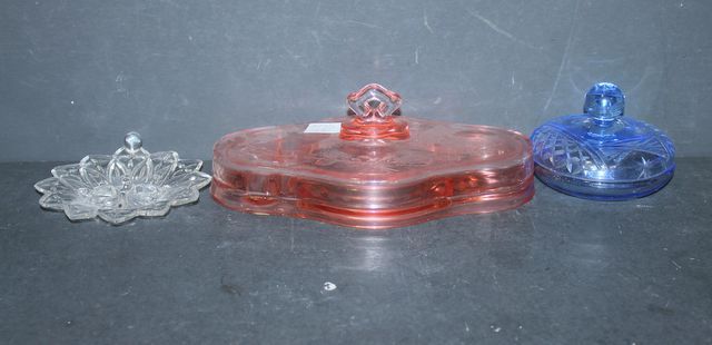 297 Depression Glass Jars and Clear Tray 4"dia.