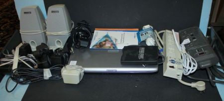 304 Toshiba Computer with cords, speakers, charger, serial x4322500K, Satellite M35x-5329