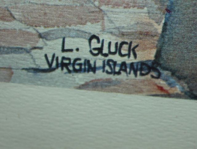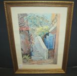 308 Watercolor Print of Steps signed L. Gluck Virgin Islands 13"w., 17"h.