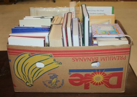 321 Box Lot of Books Including several Grisham, cookbooks, and Christian.
