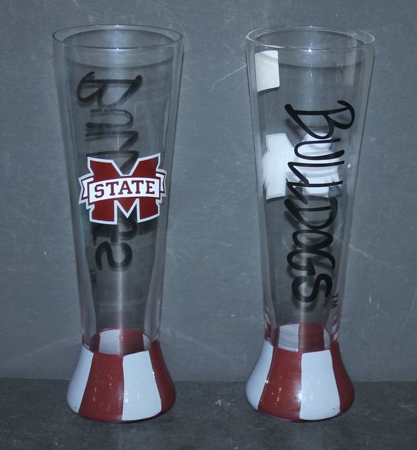Pair of Mississippi State Pilsner Glasses New Pilsner glasses, 10"h. Pair of Mississippi State Pilsner Glasses New Pilsner glasses, 10"h.