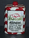 351 University of Arkansas Canister New Pottery canister with lid, 5"sq., 8"h.