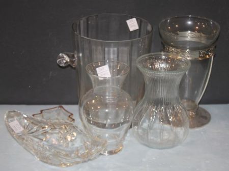 388 Glass Ice Bucket, Vases, and Relish Dish