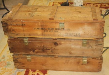 411 Three Wooden Ammo Boxes 39"w., 14"d., 9"h.