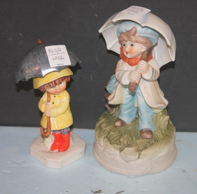 1973 Moppets Porcelain Figurine and Porcelain Figurine of Blue Boy with Umbrella Moppets 6"h., Blue Boy 7"h. 1973 Moppets Porcelain Figurine and Porcelain Figurine of Blue Boy with Umbrella Moppets 6"h., Blue Boy 7"h.