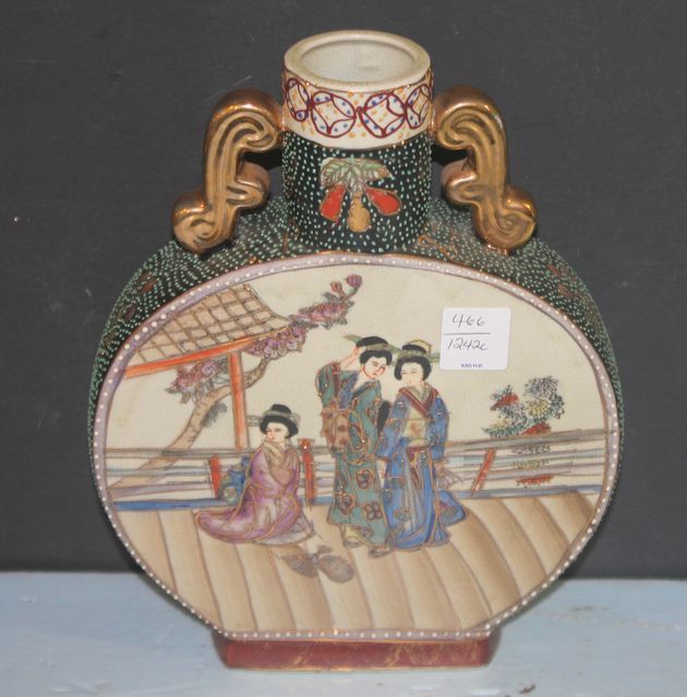 466 Marked Royal Satsuma, Handpainted Vase of Oriental Ladies 10"h.