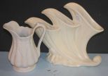 470 Ceramic Cornucopia Vase and Porcelain Pitcher Vase 13"w., 9"h.