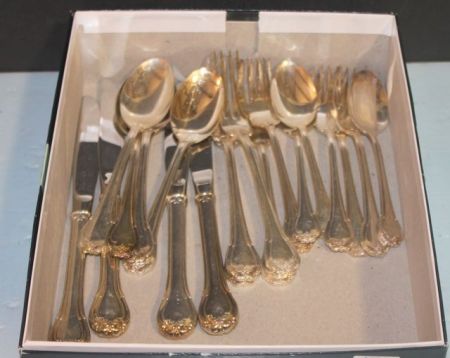 Reed and Barton "Elite" Silverplate includes 4 salad forks, 4 dinner forks, 4 knives, 4 serving spoons, and 3 tablespoons Reed and Barton "Elite" Silverplate includes 4 salad forks, 4 dinner forks, 4 knives, 4 serving spoons, and 3 tablespoons