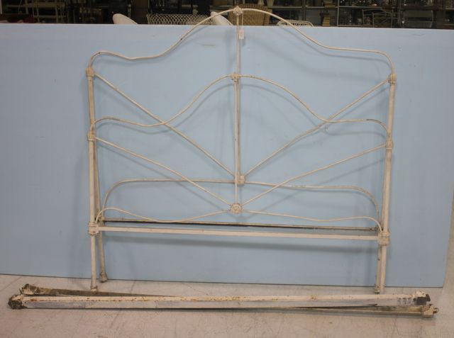Painted iron Double Size Bed has rails, 52"h. Painted iron Double Size Bed has rails, 52"h.