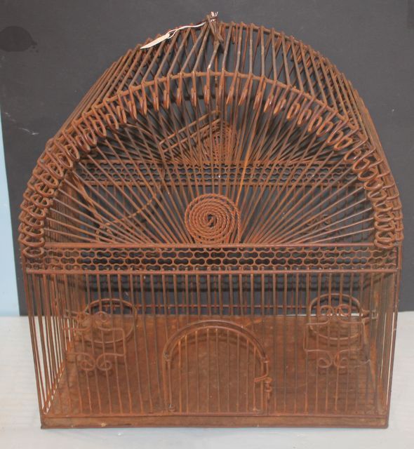 Large Iron Bird Cage 18"w., 10"d., 19"h. Large Iron Bird Cage 18"w., 10"d., 19"h.