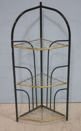 Iron and Brass Corner Shelf 16"w., 12"d., 39"h. Iron and Brass Corner Shelf 16"w., 12"d., 39"h.