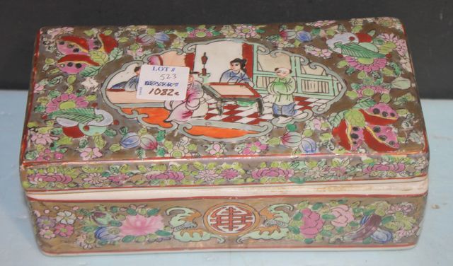 Oriental Style Painted Box 8"w., 3"h. Oriental Style Painted Box 8"w., 3"h.