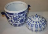 Blue and White Porcelain Flower Pot, Blue and White Mushroom Shape Covered Jar flower pot 10", jar 9"dia. Blue and White Porcelain Flower Pot, Blue and White Mushroom Shape Covered Jar flower pot 10", jar 9"dia.