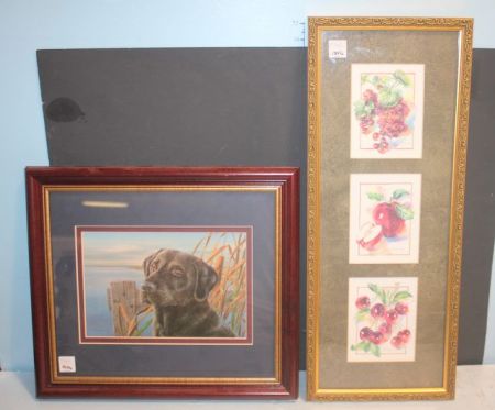 556 Framed Print of Fruits, Dog Looking For Duck Print by Randy McGovern Print of fruits 9"w., 23"h., Duck Print 16"w., 14"h.