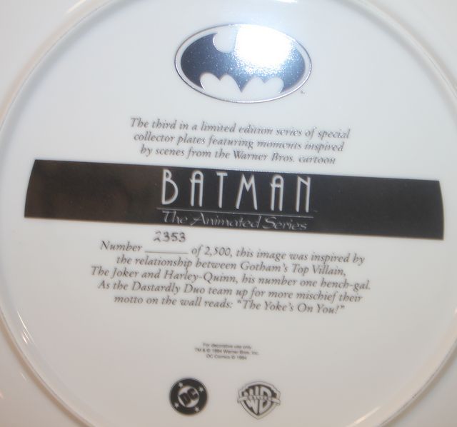 595 Animated Series Batman Plate third edition 2353/2500 collectors plate, 10"dia.