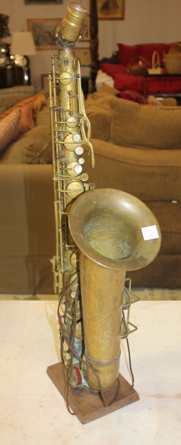 Brass Saxophone made into Lamp 31"h. Brass Saxophone made into Lamp 31"h.