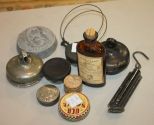 German Brass Pocket Scale, Wall Dispatch Phone Parts, Apothecary Tins and Bottle, Dutch Boy Lead Weight German Brass Pocket Scale, Wall Dispatch Phone Parts, Apothecary Tins and Bottle, Dutch Boy Lead Weight