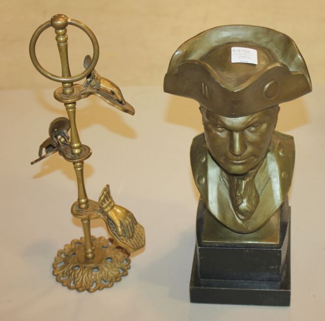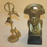 Cast Metal Bust of George Washington and Brass Hand Towel Rack Cast Metal Bust of George Washington and Brass Hand Towel Rack