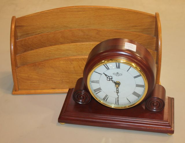 Modern Wood Mantel Clock and Slotted Wooden Desk Organizer Modern Wood Mantel Clock and Slotted Wooden Desk Organizer
