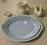 660 Two Lu-Ray Platter, Two Porcelain Swans, and Small Bird platters (one chipped)