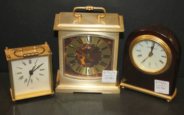 676 Howard Miller Carriage Clock, Howard Miller Dome Shape Clock, and Small Carriage Clock Carriage Clock 4"w., 5"h., dome shape clock 4"w., 5"h.
