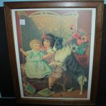 Two Girls with Dog Framed Print 18"w., 22"h. Two Girls with Dog Framed Print 18"w., 22"h.