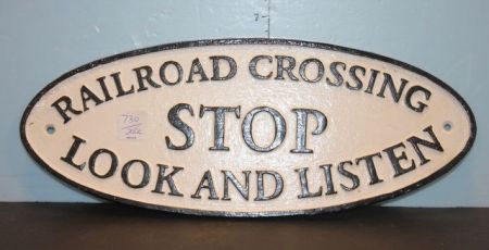 730 Repro. Cast Iron Railroad Crossing Stop Sign 15"w., 6"h.