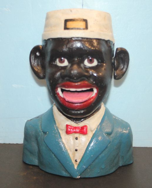 Repro. Jolly Man Mechanical Cast Iron Bank 7"h. Repro. Jolly Man Mechanical Cast Iron Bank 7"h.