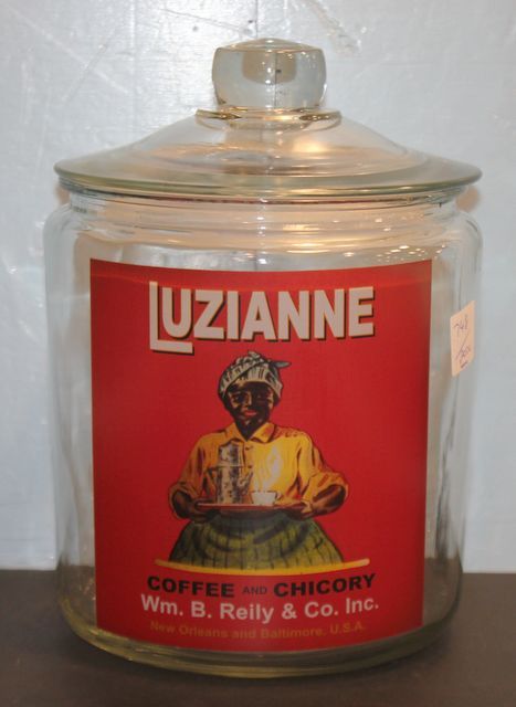 Repro. Luzianne Coffee Jar with Lid 7"dia., 10"h. Repro. Luzianne Coffee Jar with Lid 7"dia., 10"h.