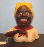 Repro. Cast Iron Aunt Jemine Mechcanical Bank 7"H. Repro. Cast Iron Aunt Jemine Mechcanical Bank 7"H.