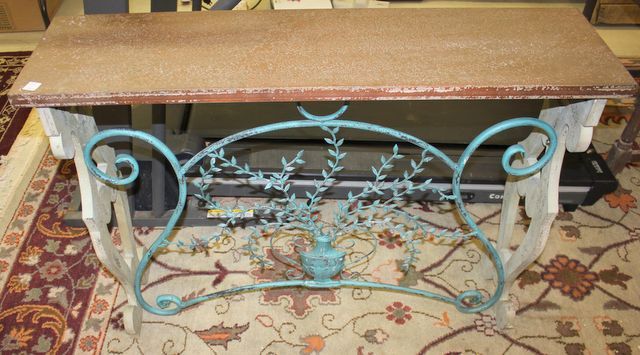 764 Wood and Metal Foyer Tabel 44"w., 32"h.