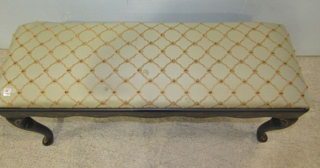a little tear in upholstery, couple of small stain spots, modern piece, 18"h., 42"w. a little tear in upholstery, couple of small stain spots, modern piece, 18"h., 42"w.