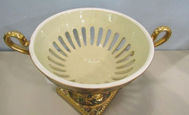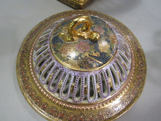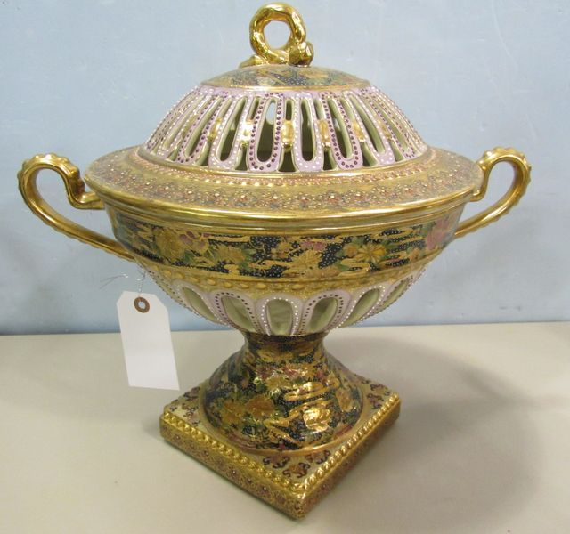 Cobalt blue, Teal, Heavy Encrusted Gold Designs, beaded, Modern, made in china, 14"h., 11"dia. Cobalt blue, Teal, Heavy Encrusted Gold Designs, beaded, Modern, made in china, 14"h., 11"dia.