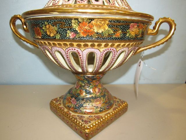 Cobalt blue, Teal, Heavy Encrusted Gold Designs, beaded, Modern, made in china, 14"h., 11"dia. Cobalt blue, Teal, Heavy Encrusted Gold Designs, beaded, Modern, made in china, 14"h., 11"dia.