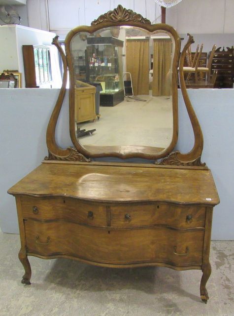 With mirror, 27"h., 48"w., 23"d. wood is cracking on top. Claw feet, one is chipped. With mirror, 27"h., 48"w., 23"d. wood is cracking on top. Claw feet, one is chipped.