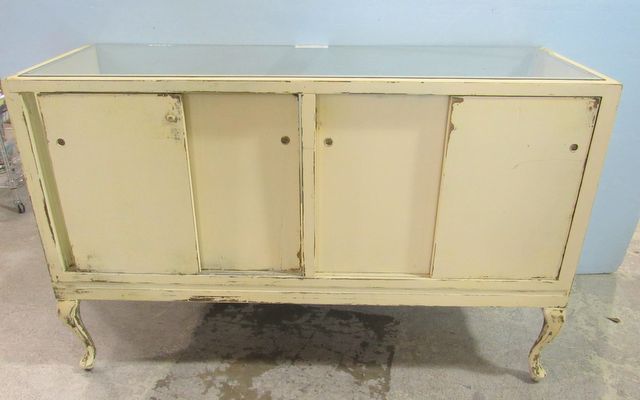 Glass top, no doors or shelves. 38"h., 60"w. Glass top, no doors or shelves. 38"h., 60"w.