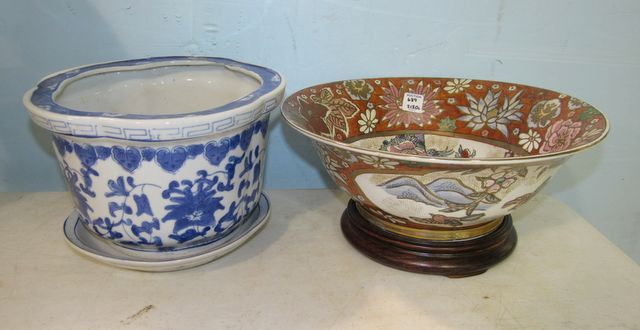 689 Chinese Hand Painted Bowl and Blue and White Planter
