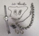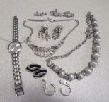 Anne Klein watch, monet earrings, Trifari Necklace, 4 pairs of earrings, beaded necklace Anne Klein watch, monet earrings, Trifari Necklace, 4 pairs of earrings, beaded necklace