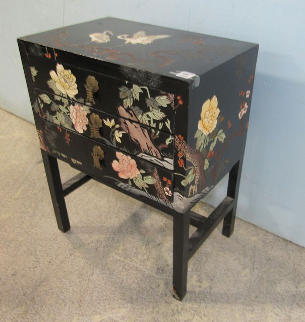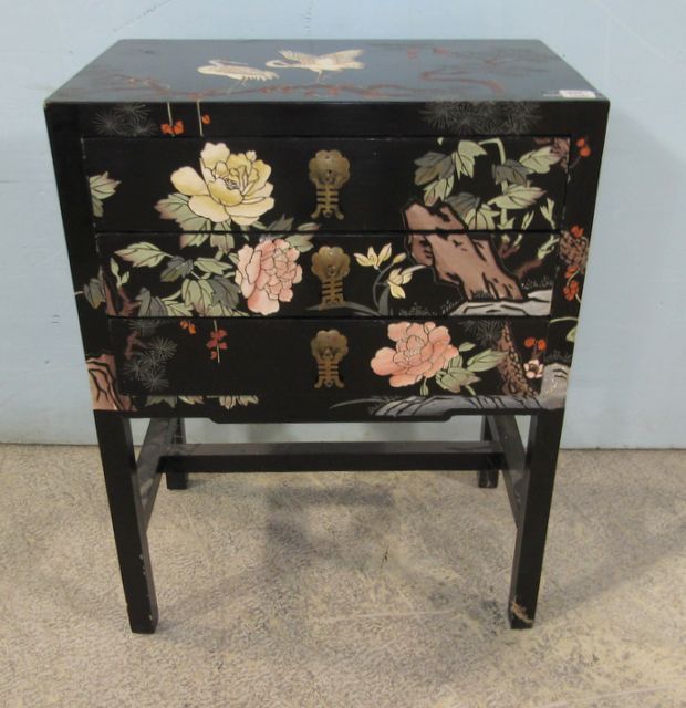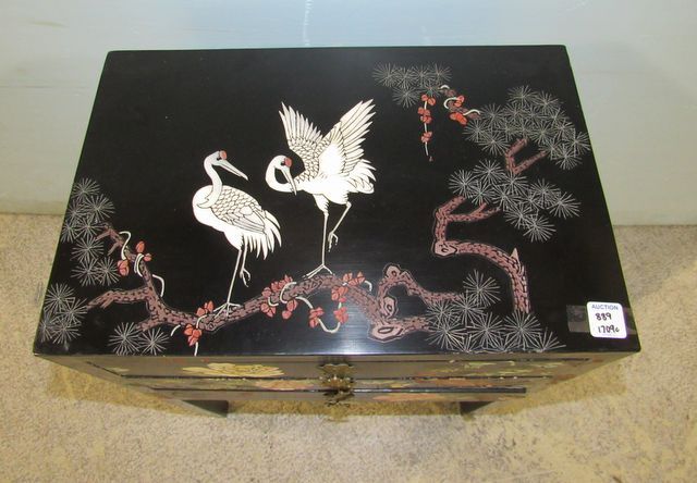 painted Asian Design with birds, 22"h., 17"w., 11"d. painted Asian Design with birds, 22"h., 17"w., 11"d.