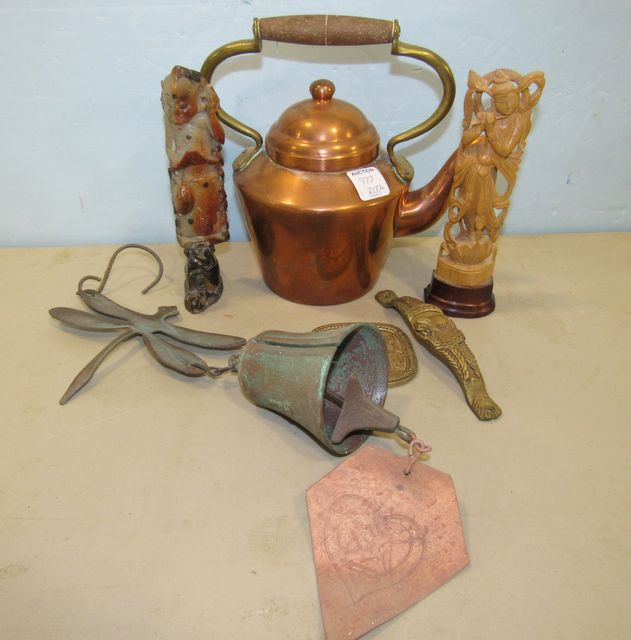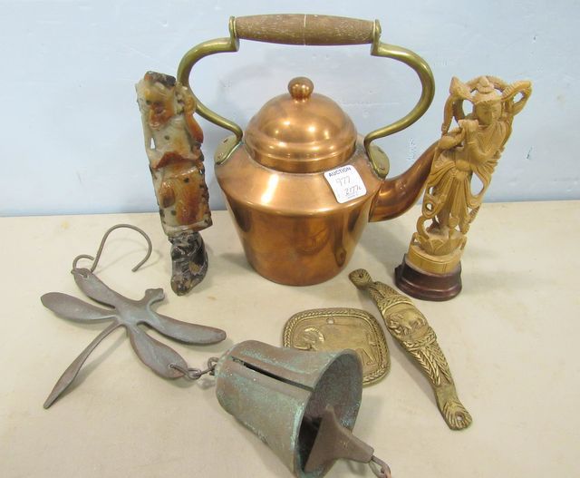 Soap Stone Figurine, Wood Carved Figurine, Copper Tea Top, Handcrafted Ghana Elephant Hardware, Dragonfly Hanging Bell. Soap Stone Figurine, Wood Carved Figurine, Copper Tea Top, Handcrafted Ghana Elephant Hardware, Dragonfly Hanging Bell.