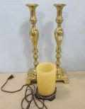 978 Pair of Brass Candle holders and Electric Candle