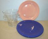 979 Two Large Round Serving Plates and Glass Handled Ice Bucket