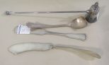 1003 Wallace Silverplate Candle Snuffer, Two Silverplate Butter Spreaders and Damaged Siverplate Spoon