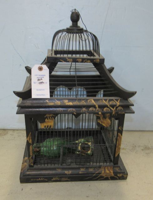 1019 Black and Gold Painted Bird Cage
