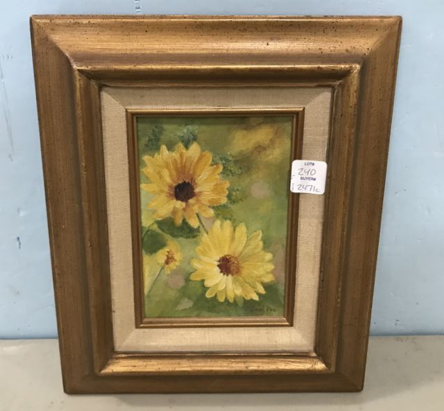 Peggy Bracken Painting of Sunflowers on Board, talented Mississippi Artist (1916-2009) Margaret Louise "Peggy" Hale Bracken, framed, 12"h., 10"w. Peggy Bracken Painting of Sunflowers on Board, talented Mississippi Artist (1916-2009) Margaret Louise "Peggy" Hale Bracken, framed, 12"h., 10"w.